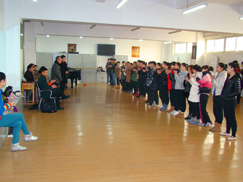 会后,响沙湾领导对我系11级舞蹈专业两个班的学生进行了面试。本次招聘主要针对曾在景区实习过的11级舞蹈专业学生,最后,有五名同学与响沙湾达成了就业协议。另外,响沙湾领导对明年准备去实习的12级舞蹈专业学生进行了专业观摩,他们对我系舞蹈专业学生的业务能力给予了充分的肯定。