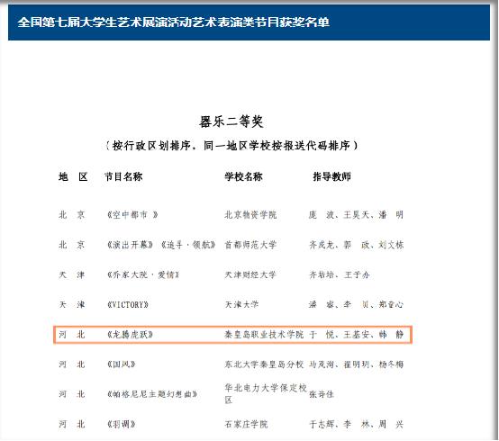 近日,由教育部办公厅举办的全国第七届大学生艺术展演活动评选结果揭晓,我系于悦、韩静等老师指导的《龙腾虎跃》作品荣获国家级艺术表演类器乐二等奖。此次佳绩的取得充分展现了我系美育工作的丰硕成果,也为日本三級片美育工作实现了又一次历史性突破!