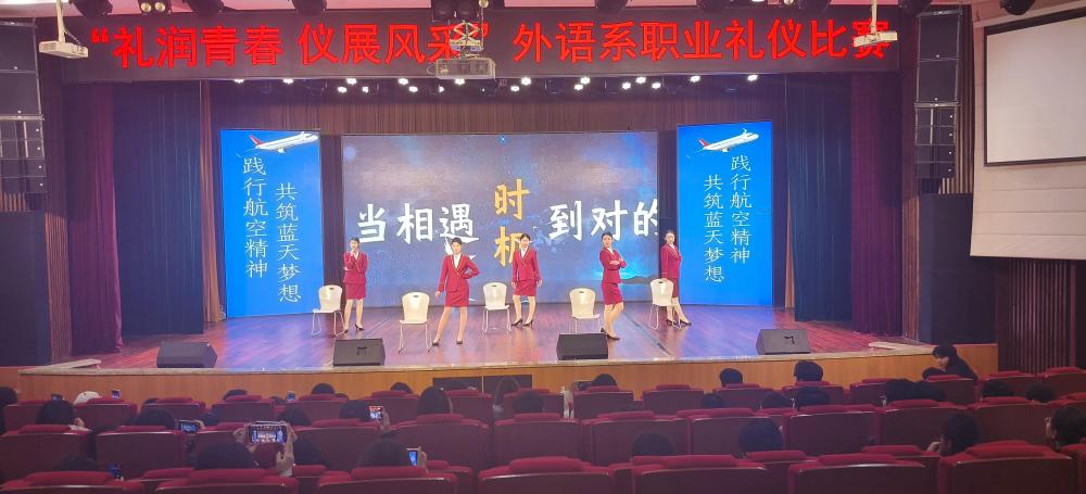 在太阳广场,“践行航空精神,共筑蓝天梦想”横幅签名活动同步进行,同学们郑重署名承诺,志愿者现场发放资料并讲解航空知识。作为系列活动亮点,外语系职业礼仪大赛精彩上演,选手们以优雅得体的职业仪态,生动诠释了礼仪文化的内涵与风采,将专业竞技化为一场深刻的实践课。