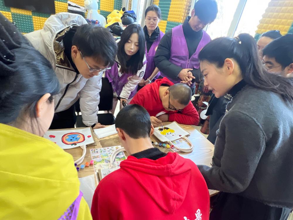 手绘包环节的“按图填色”设计,看似降低难度,实则藏着对孤独症天使宝贝的成长关怀。志愿者提前调研天使宝贝的兴趣,定制小花朵、卡通形象等低压力图案;对握笔吃力的宝贝递加粗画笔,对色彩犹豫的推荐色卡,每一个细节都在帮宝贝建立 “我能做到” 的信心。当宝贝们举着填好色的手绘包展示,或悄悄塞给志愿者“分享”时,这些瞬间不仅是创作的成就感,更是公益活动赋予他们的自我认同,让特殊群体在动手过程中感受到“被看见、被肯定”。