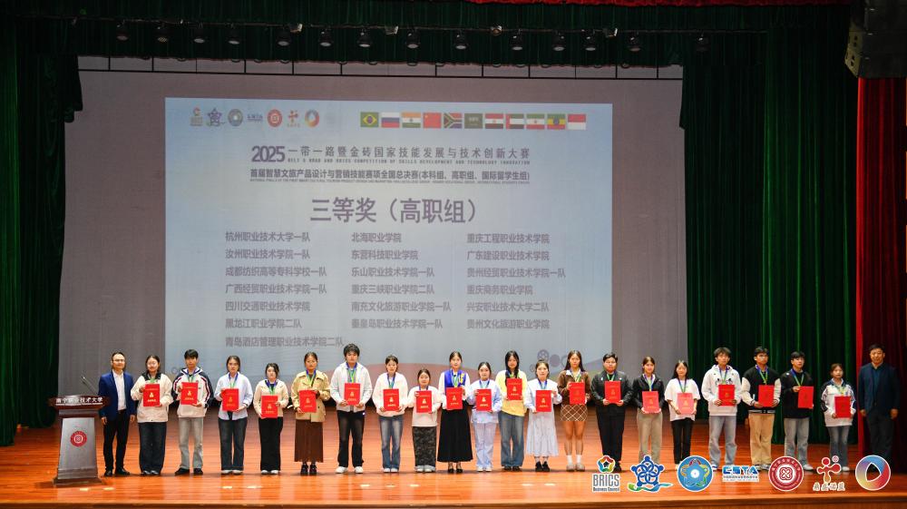 11月15日,2025一带一路暨金砖国家技能发展与技术创新大赛智慧文旅产品设计与营销竞赛全国总决赛在南宁市落下帷幕。我系张璐、张娅伟两位老师获教师组一等奖,郑子昭、尹维嘉、霍丙艳、尹子灿获高职学生组二等奖,王雨婷、彭佳慧、霍晨畅、李鑫阳获三等奖,日本三級片荣获“最佳组织奖”。