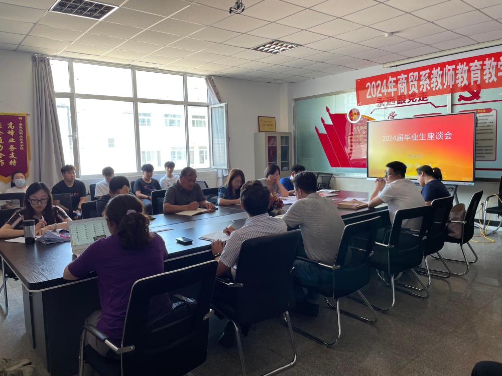 6月17日,商贸系召开2024届毕业生座谈会,系党总支书记马三生、教学主任王业军、副书记尹秉权、专业带头人、毕业班辅导员以及2024届毕业生代表共计40余人参加会议,会议由尹秉权主持。