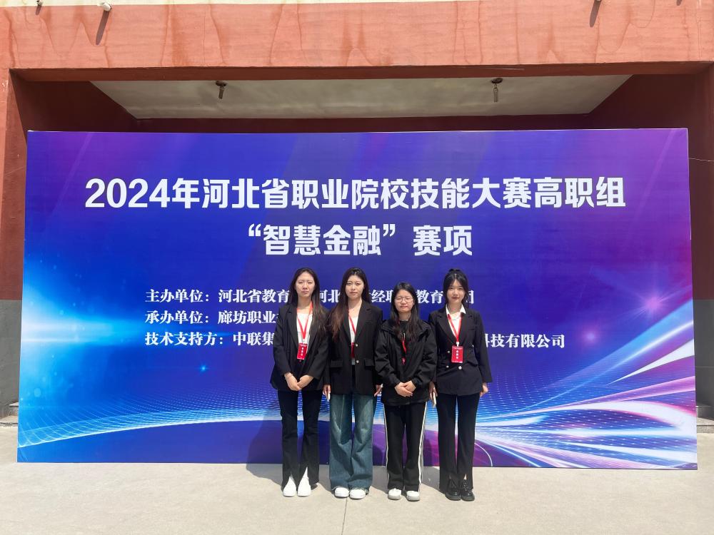 2024年4月19日-21日,河北省职业院校技能大赛(高职组)智慧金融赛项暨国赛选拔赛在廊坊落下帷幕。来自全省高职院校的19支代表队76位参赛者同台竞技,我系金融科技应用专业学生于昕怡、秘筱雅、孙璐瑶、杨依蕾组成的参赛队伍,在周宁、赵婷两位老师的指导下,获得省赛三等奖的优异成绩。