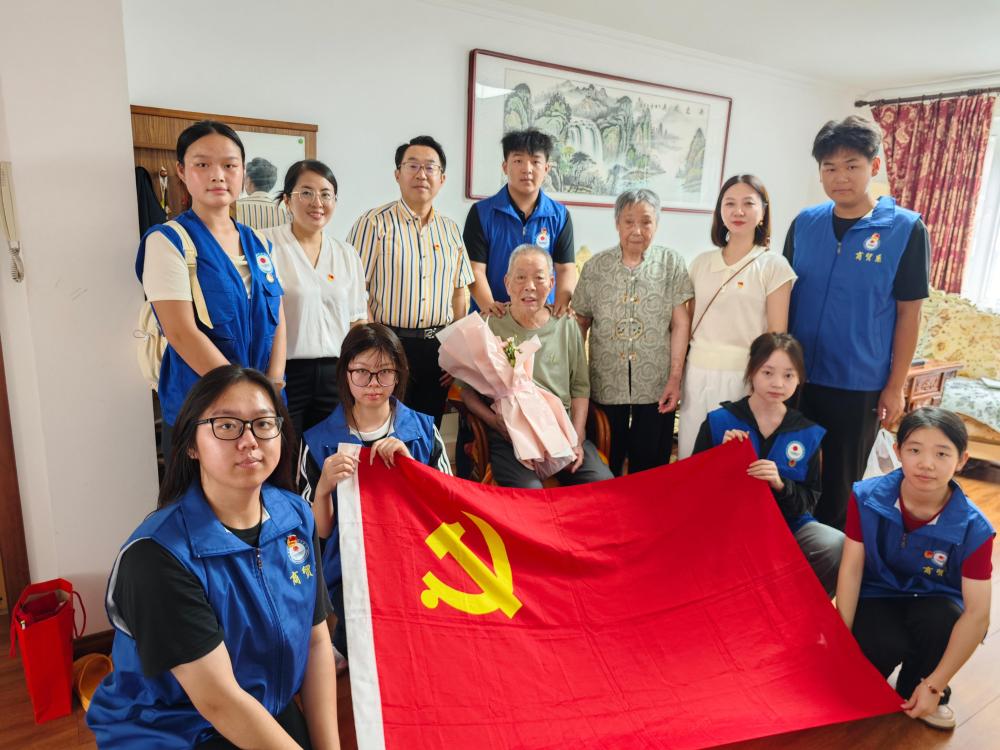 在纪念世界反法西斯战争胜利80周年之际,9月2日,商贸系党总支组织教师党员教师和入党积极分子前往北戴河育花小区,看望并慰问了98岁抗战老兵杨宗杰。