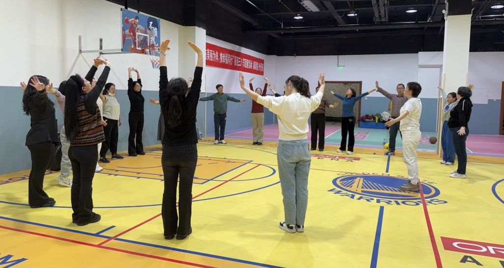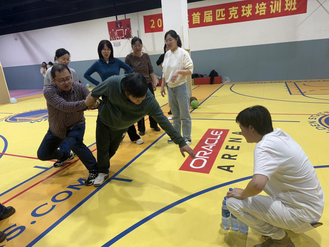 伴随着轻快的音乐,全体教师共跳“兔子舞”为团建活动开场,老师们舞姿欢快,现场欢笑声此起彼伏。在分组竞技环节,“蛇来运转”智趣赛,2支队伍化身“贪吃蛇”,队员搭肩碎步同协作,考验信任与默契。“众志成城”耐力战,队员手挽手肩并肩,齐心协力,将标志物取回到标志线内,体现了全队的核心能量;“定点投篮赛”,教师分组进行趣味投篮,女老师们人人身手不俗,纷纷投篮得分,令人刮目相看。