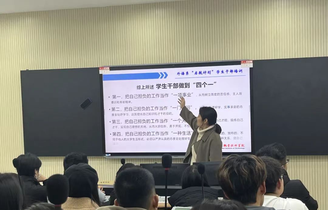 11月7日,外语系在5505多媒体教室开展“启航计划”干部培训讲座,此次讲座由外语系党总支副书记赵丽丽主讲,全体学生会干部及各班班长参加。