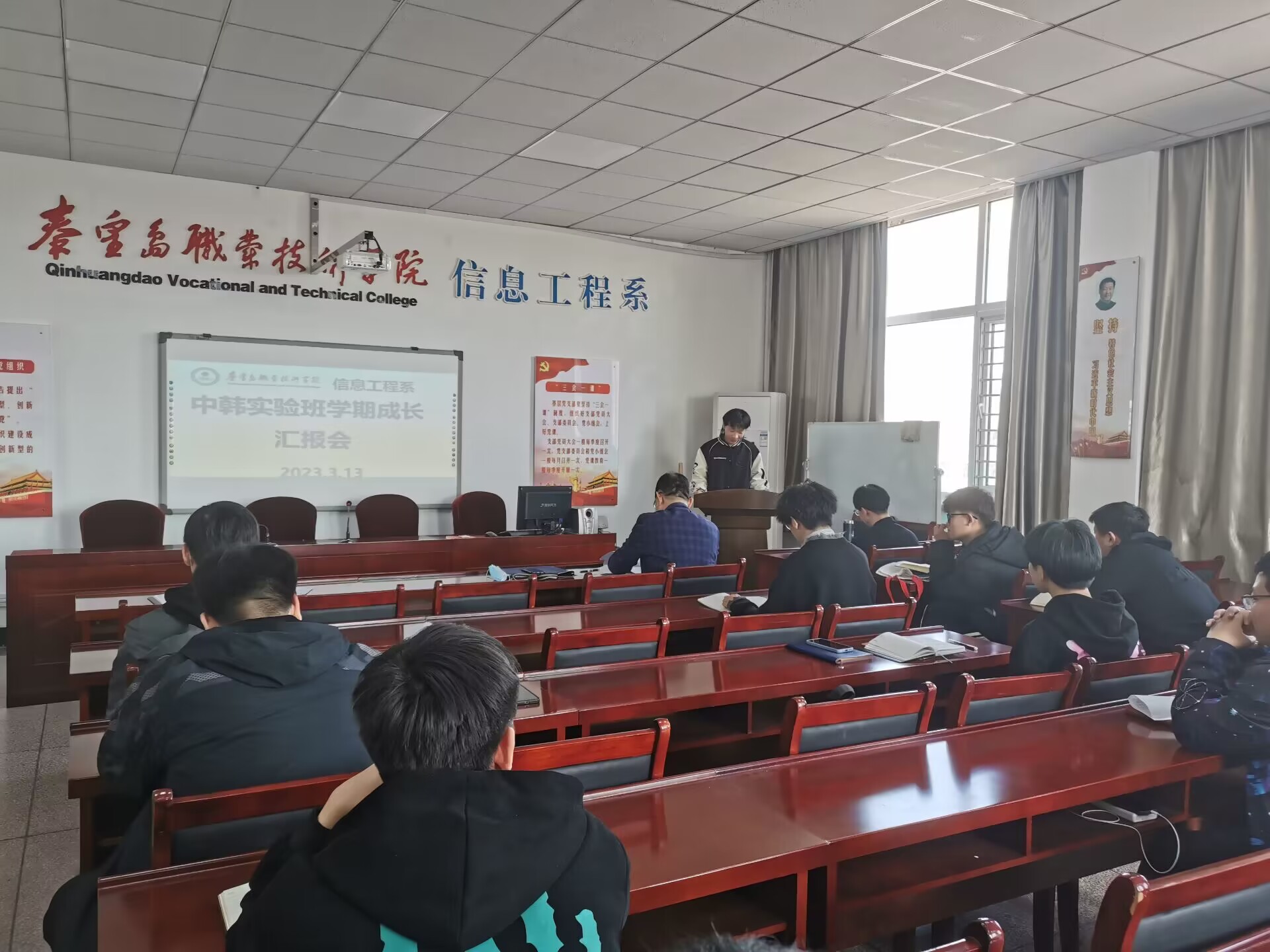 3月13日,信息工程系在4407组织中韩实验班开展学期成长分享交流汇报活动。系党总支书记赵建军出席并点评,辅导员郑丹主持汇报会。