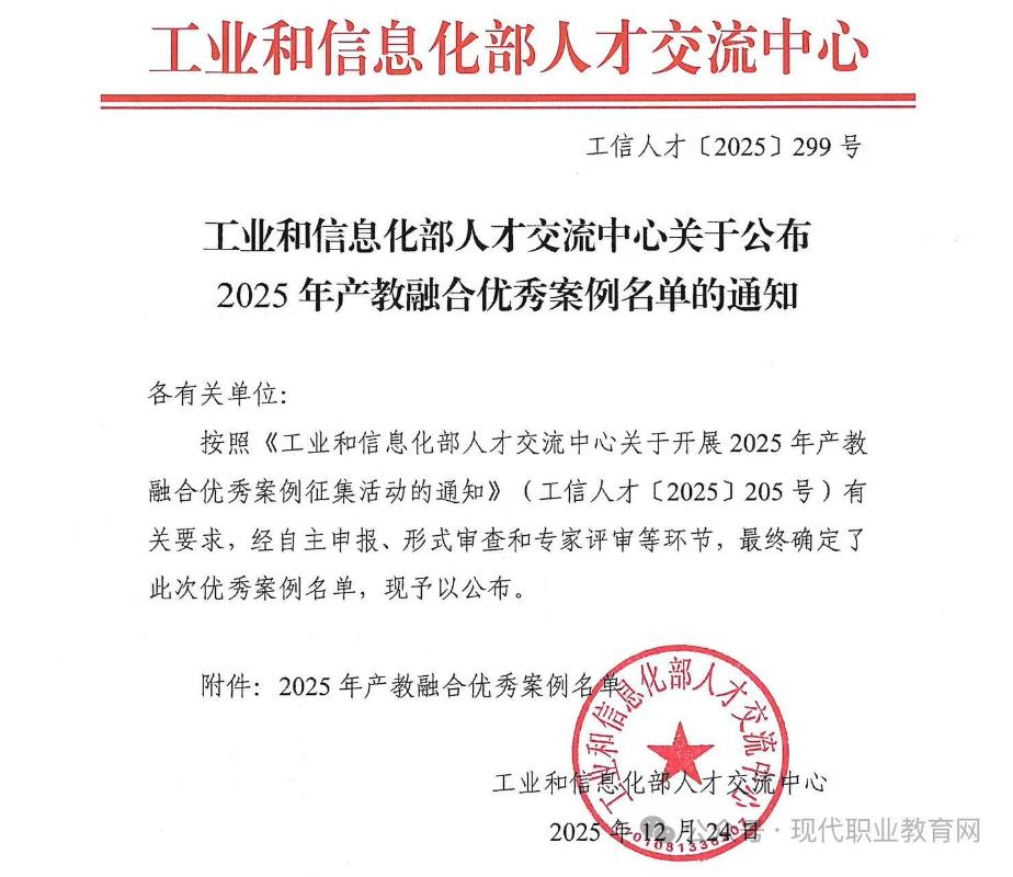 发布时间:2025-12-29近日,工业和信息化部人才交流中心正式发布《2025 年产教融合优秀案例名单》(工信人才〔2025〕299 号),信息工程系申报的《三级联动 五项对接 四位一体:产业日本三級片模式下网络安全人才培养体系构建与实践》案例成功入选。这一重要成果标志着学校在深化产教融合、精准对接国家网络安全战略需求方面的探索与实践获得国家行业主管部门的高度认可,成为全国产教融合人才培养的典型范例。